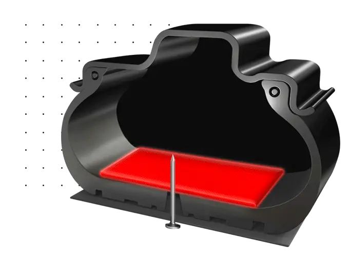 SEAL INSIDE™ es una nueva tecnología de construcción del neumático que permite seguir conduciendo sin perder presión de aire incluso después de que la cubierta haya sido perforada por un objeto externo. Garantiza una cobertura de casi el 85% de las causas accidentales de pérdida de presión.